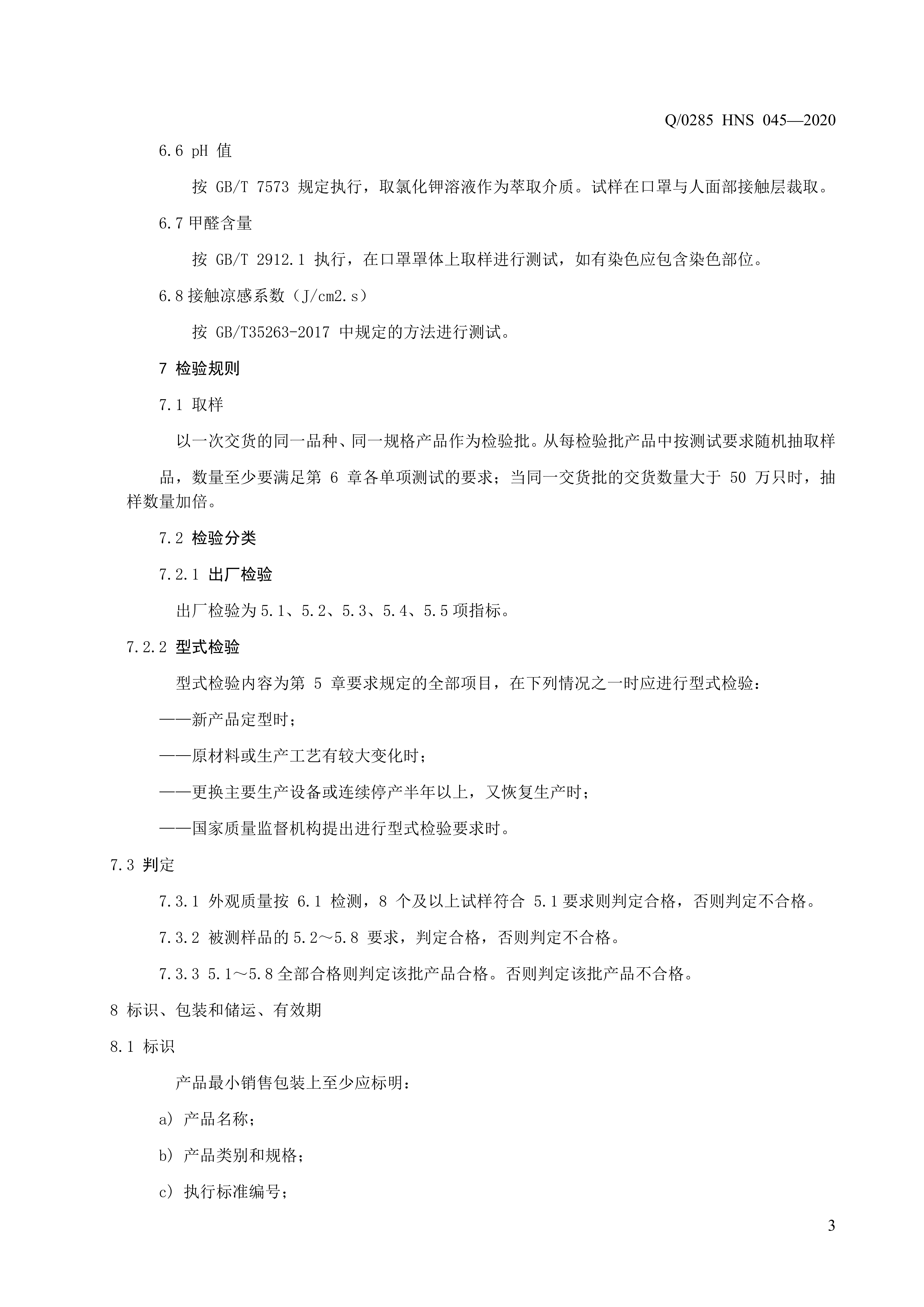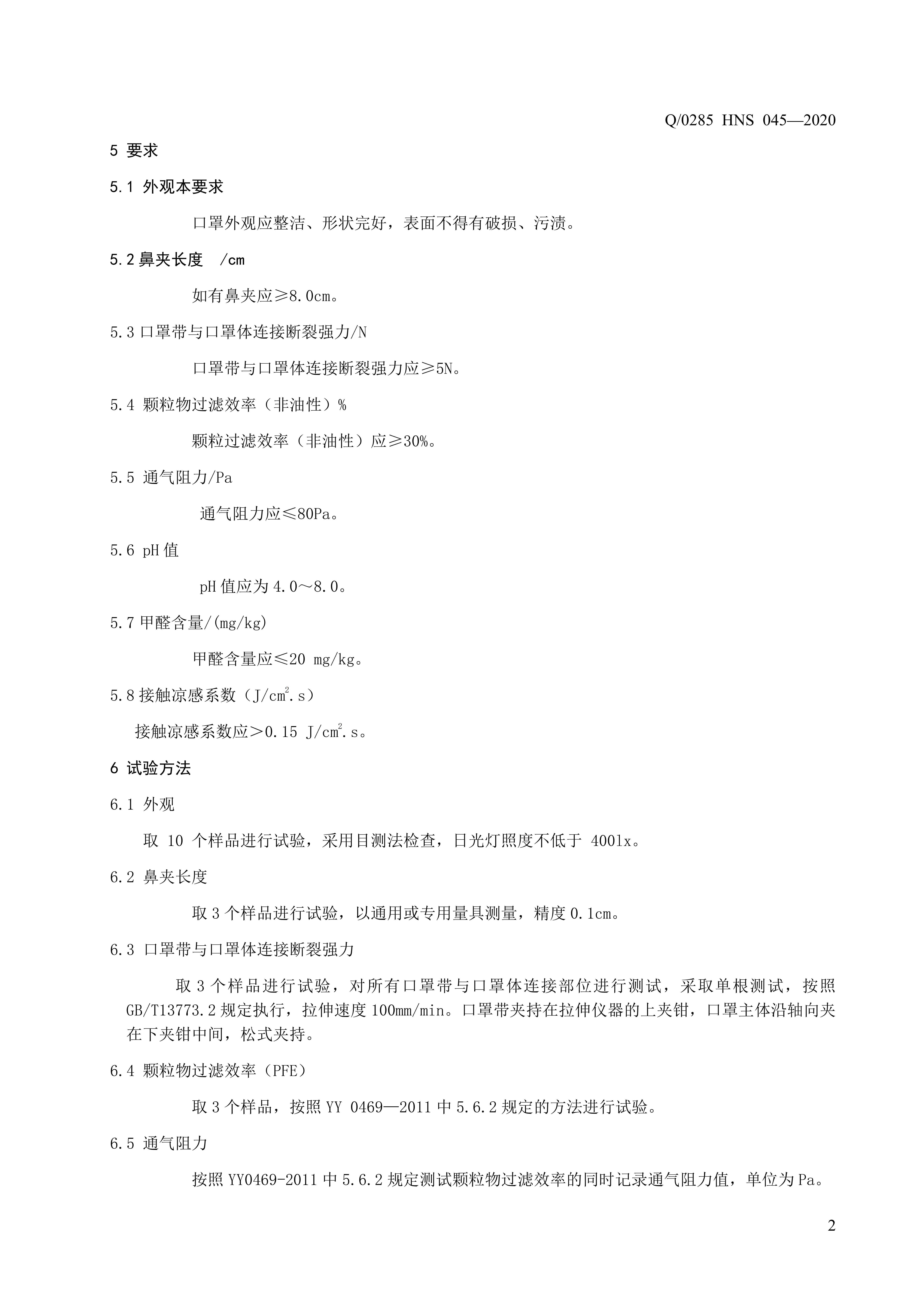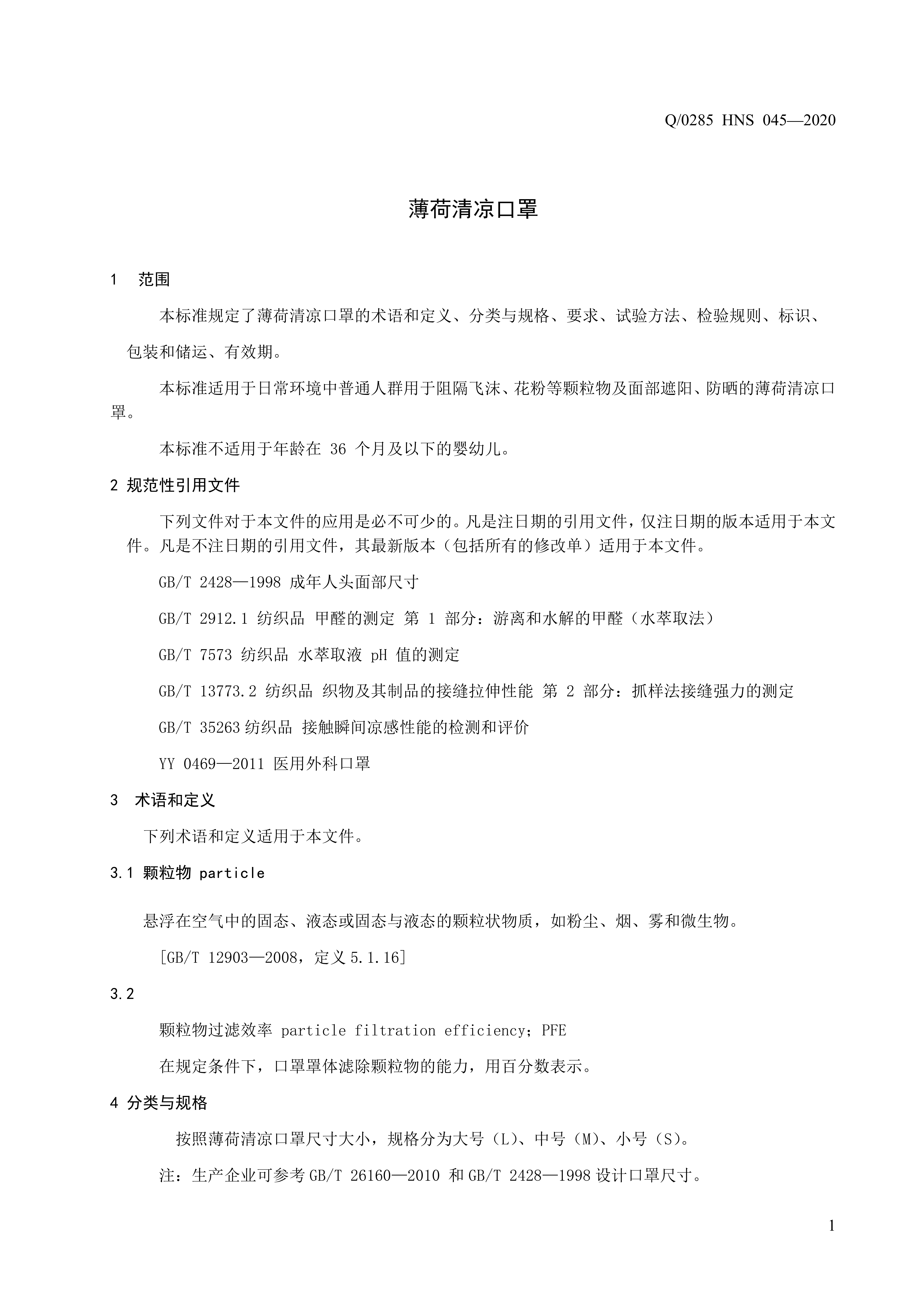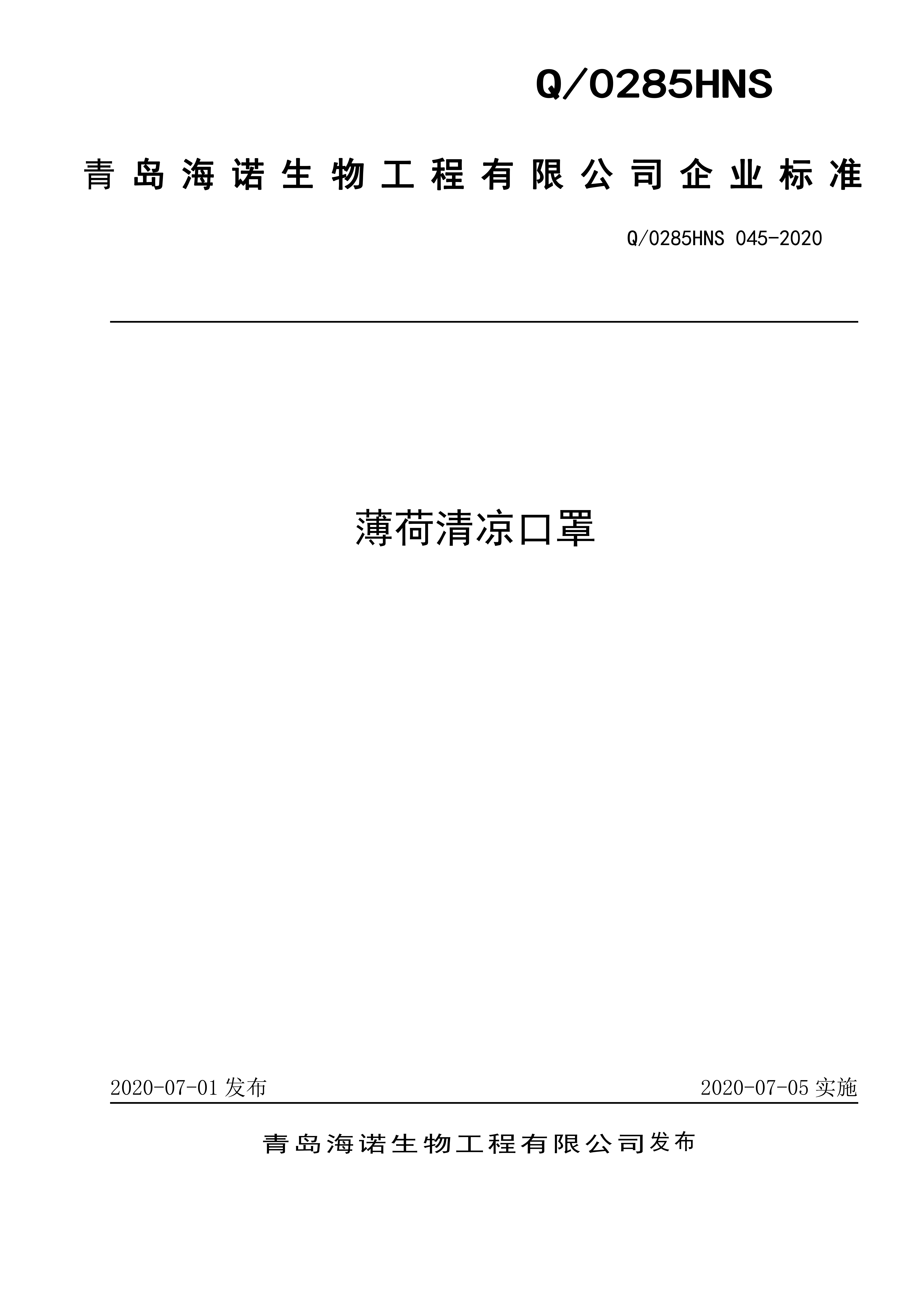 青島海諾生物工程有限公司企業標準 — 薄荷清涼口罩